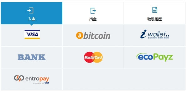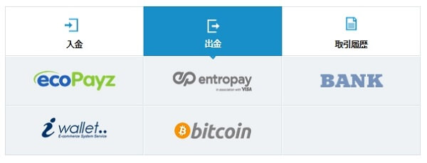 - ecoPayz、iWallet、ビットコイン、イーサリアム、リップル、ライトコイン。
