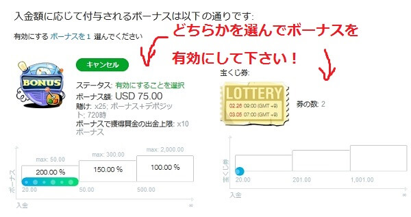 そうすれば、「支払い」ボタンをクリックしそうになります。入金後にボーナスを有効にすることは出来ません。
