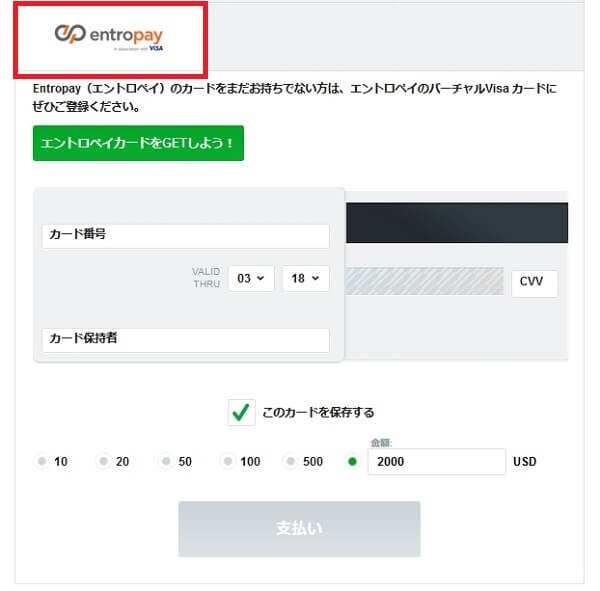 エントロペイでの入金方法