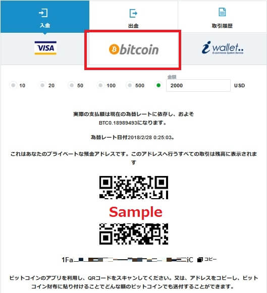 ビットコインでの入金方法
