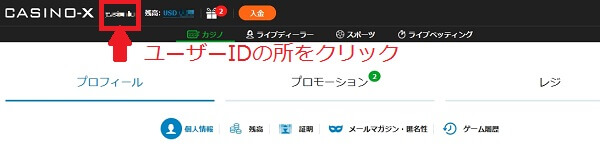まず、そのために、カジノXスのユーザー名をクリックして、マイアカウントページを開きます。