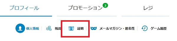 そこでプロフィールのタブの中から「証明」ボタンをクリックします。