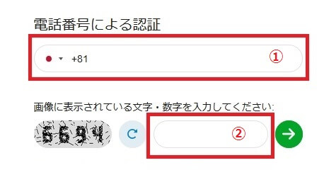 次のステップは画面右の電話番号による認証を行います。