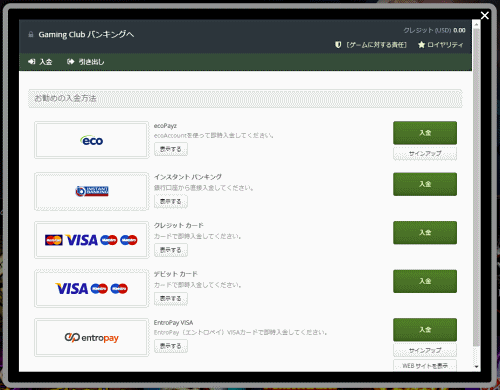 日本には、ゲーミングクラブカジノの入金のために、ecoPayz(エコペイズ)を利用します。入金はクレジットカードやデビットカードでも可能ですが、出金にはecoPayz(エコペイズ)だけで取り引くんですが、入金にもそのシステムを使ったらいいです。