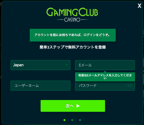 ゲーミングクラブカジノで登録したい場合は、次のステップをしてください。