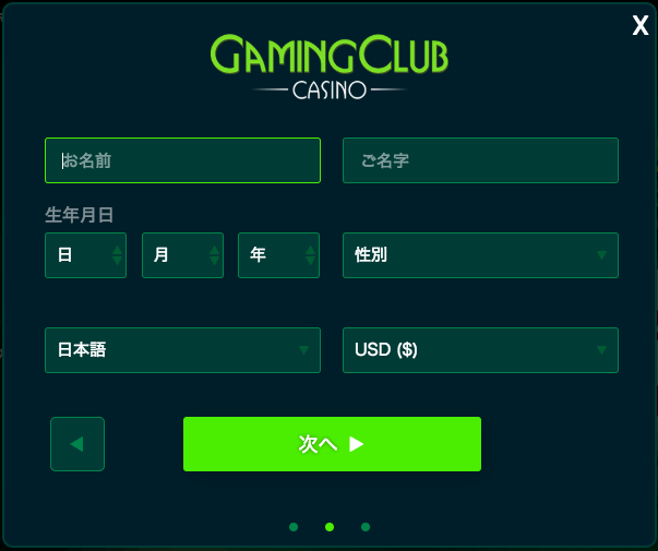 まず、当サイトからゲーミングクラブカジノのサイトを開いてください。そこで、「登録」とか「今すぐプレー」とかをクリックしてください。