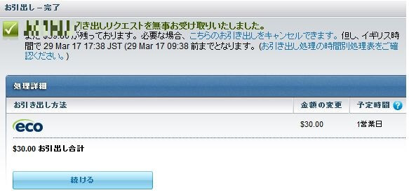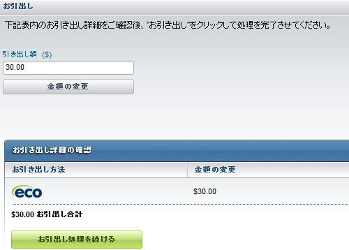 金額を入力してから、「お引き出し処理を続ける」をクリックしてください。