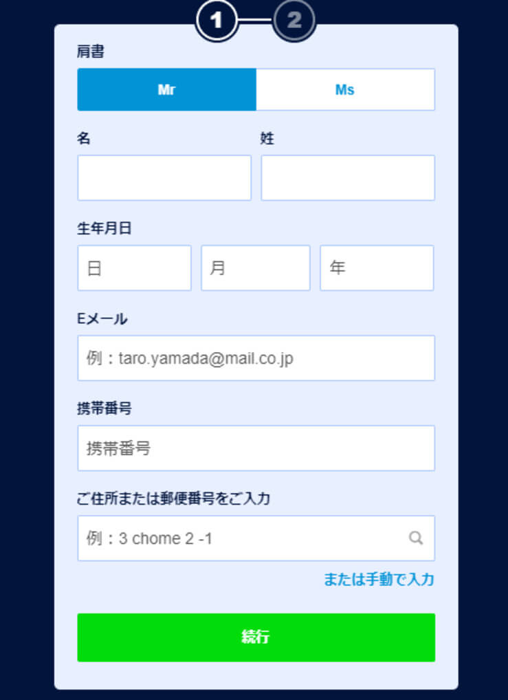 開けたページに名前や住所などの必要な情報を入力してください。注意!ローマ字で情報を入力できます。