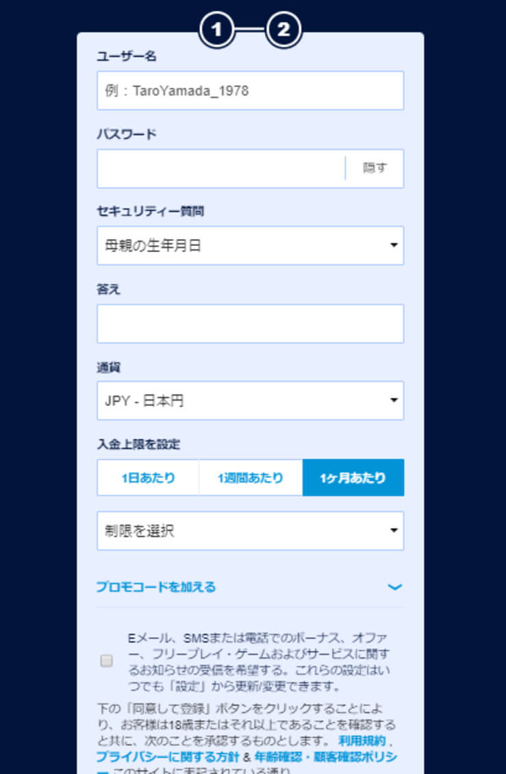 まずJapanCasinoSpotサイトでウィリアムヒルカジノサイトを開けて、ページの上の右に「登録」ボタンをクリックしてください。