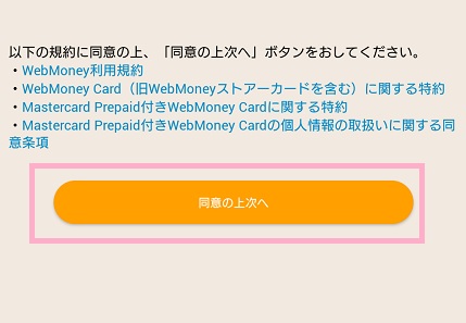 カード申入画面に移りますので必要な情報を入力し、「同意の上次へ」を選択します。