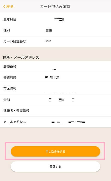 確認画面が表示されたら、「申し込みをする」を選択して申請を完了させます。後日、磁気カードが送られてきます。