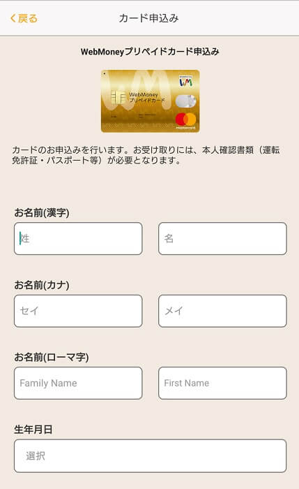「持っていない」を選択するとプリペイドカードが発行されます。